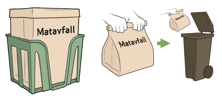 Måndagen den 26/2 är det dags att slänga matavfallet i de bruna papperspåsarna och sedan lägga dessa i soptunnorna med brunt lock i miljörummen i port 18 och port 22.